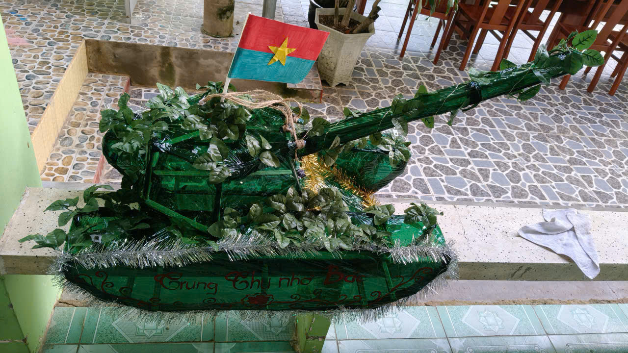 Lồng đèn được làm từ các nguyên vật liệu địa phương được các Cô sáng tạo thành nhiều tác phẩm rất xinh, rất đẹp.