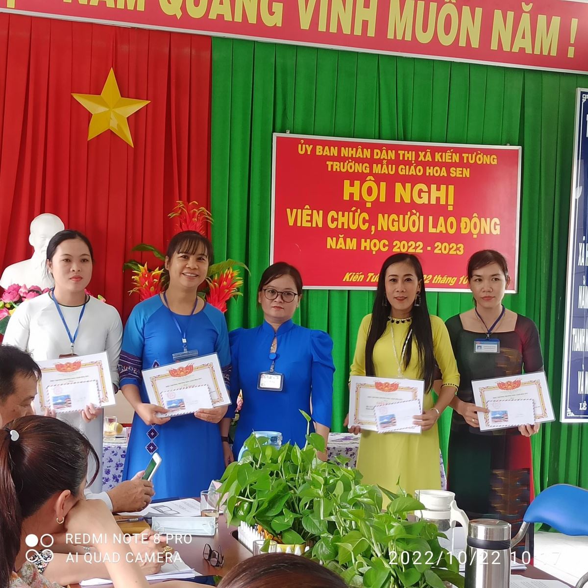 Chi bộ Trường Mẫu giáo Hoa Sen tổ chức buổi lễ trao thẻ Đảng viên cho đảng viên trong Chi bộ một cách trang trọng. Đến dự có đồng chí Nguyễn Văn Nghĩa - Trưởng phòng VH-XH Phường Kiến Tường