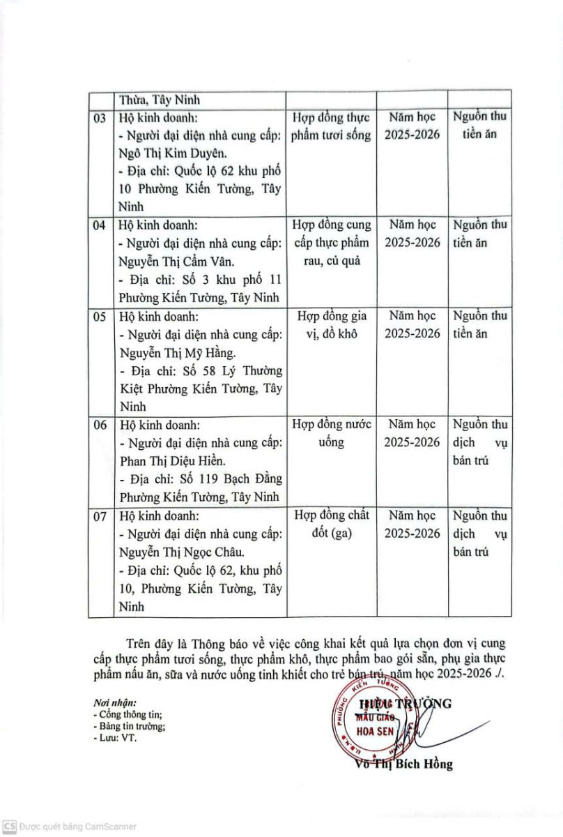 • Thông báo về việc công khai lựa chọn nhà cung cấp thực phẩm.